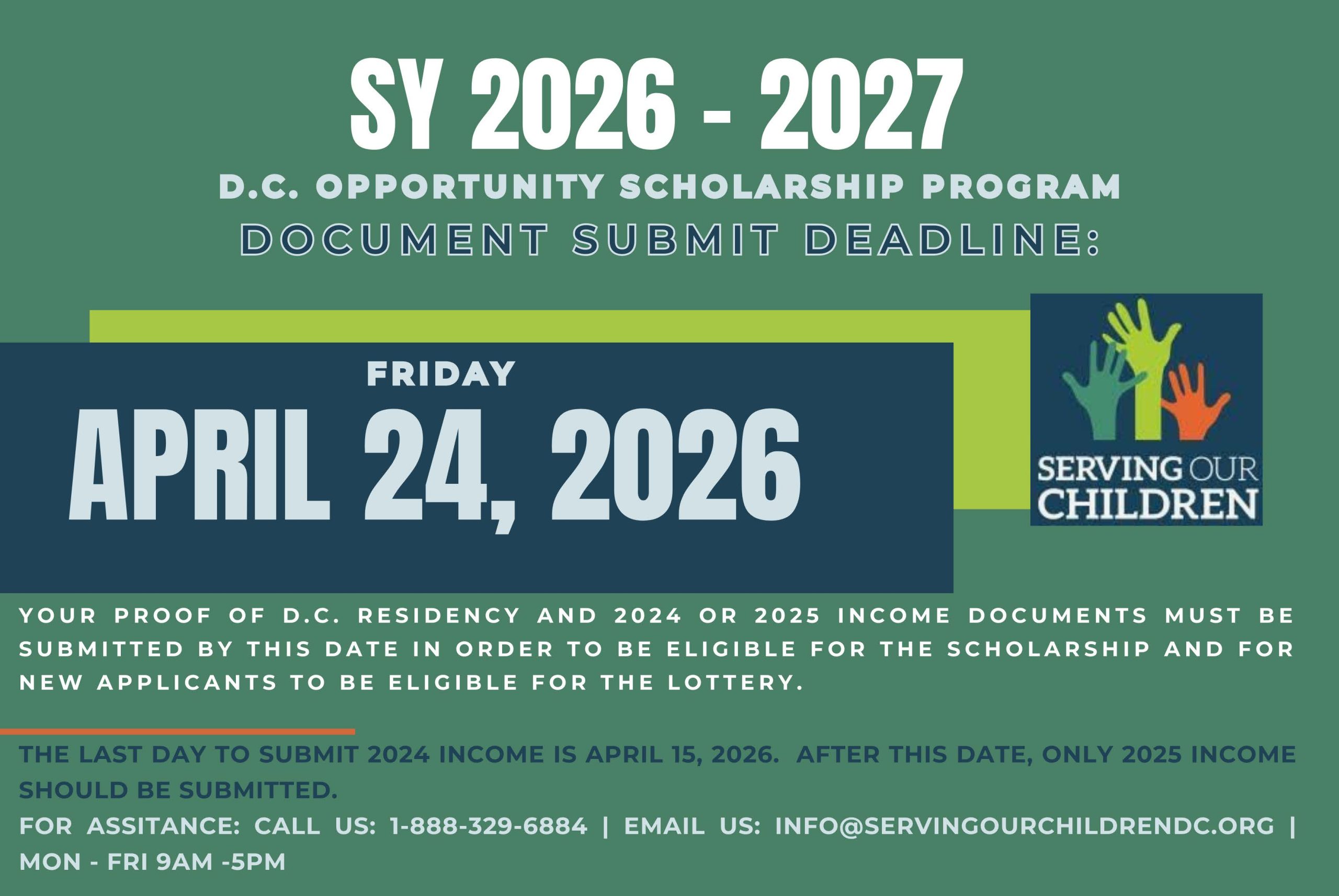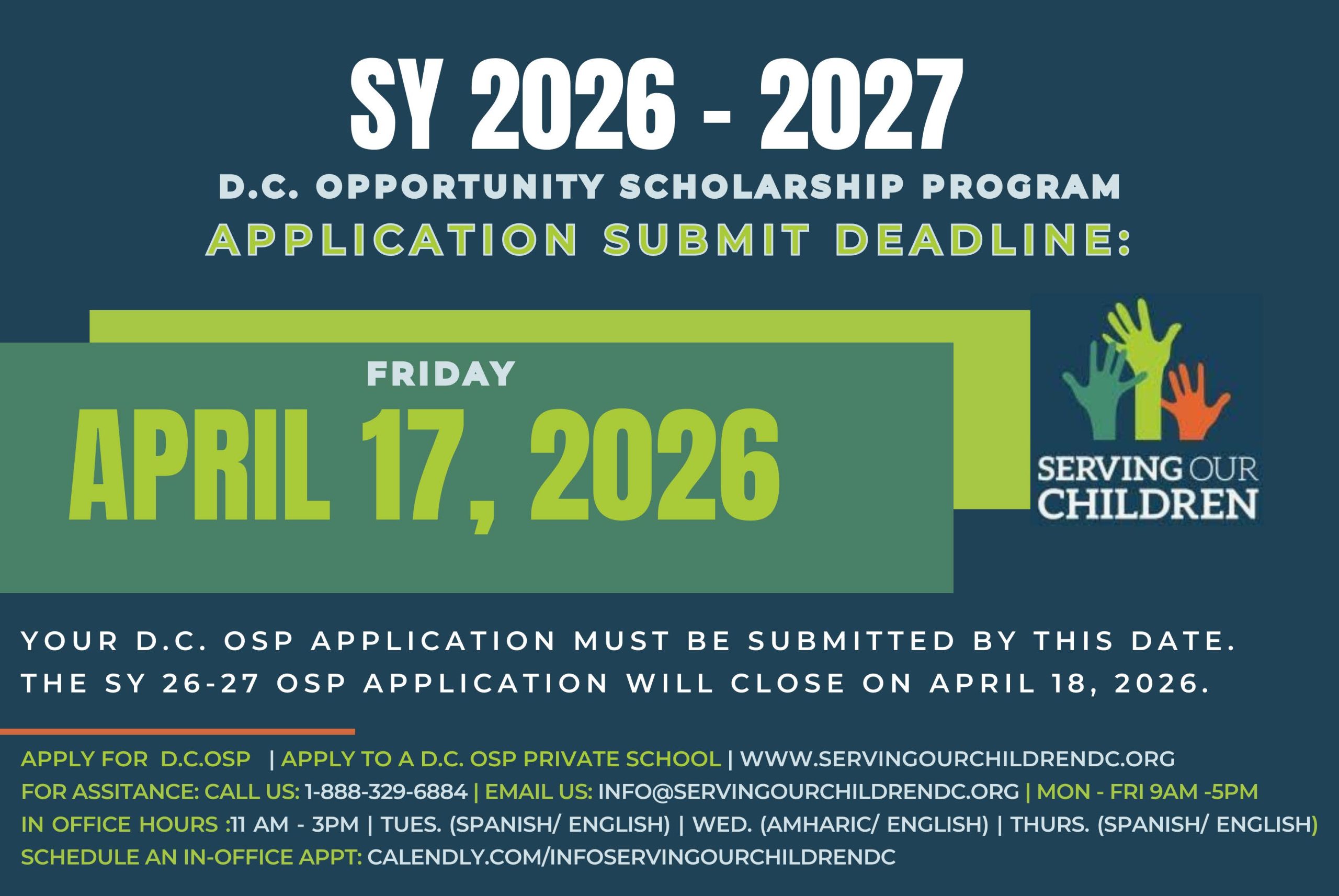 Serving Our Children (SOC) keeps you up to date with family events for the Opportunity Scholarship Program (OSP), scholarship application events, events of interest sponsored by other community organizations, and open house dates and application deadlines from our OSP participating private schools!